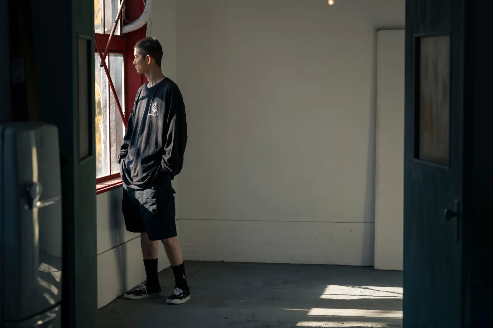 半袖のホワイトと比べてブラックは生地の風合いがよりよく見えて、American Apparelらしいカジュアルなムードが満点。 シングルステッチのシンプルさがブラックだとモードな雰囲気を出しています。
