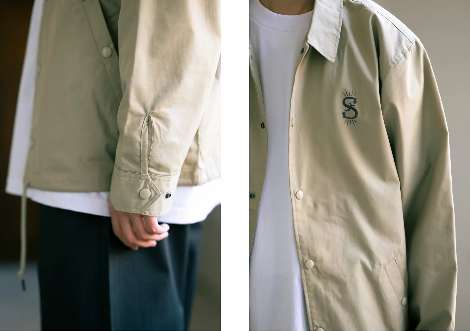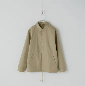 撥水、防風の機能を備えたコーチジャケットです。商品名の「T/C」とはポリエステルとコットン混紡の生地のこと。ほどよい張りを感じられるばさっと感が魅力です。