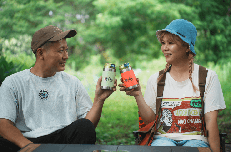 タロー/(以下、T):いつも僕らが乾杯の時に乾杯でサイノ!と言っている”Saino”を缶クーラーにデザインしました。