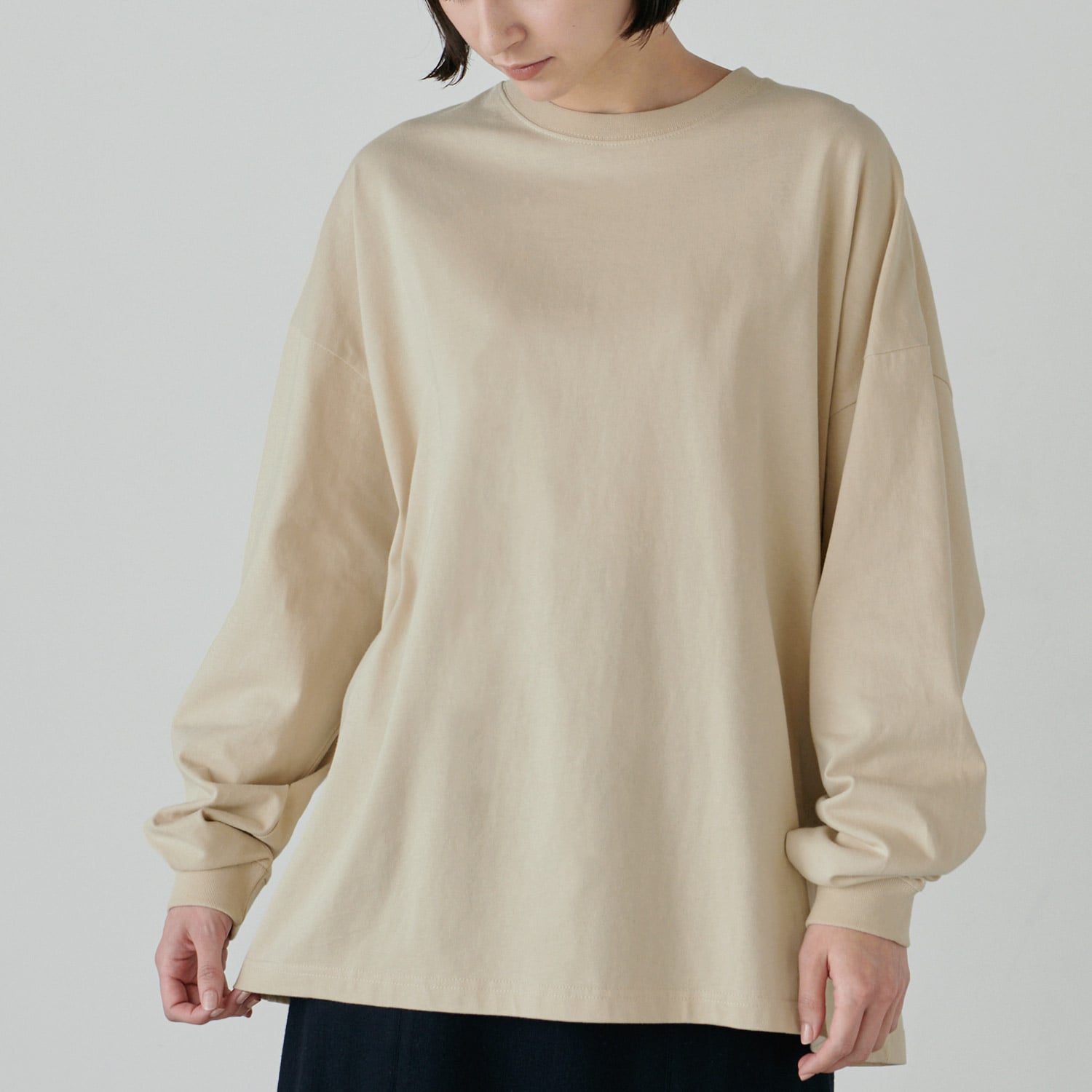 ほどよい厚みで季節問わず着用できるビックシルエット長袖Tシャツ。