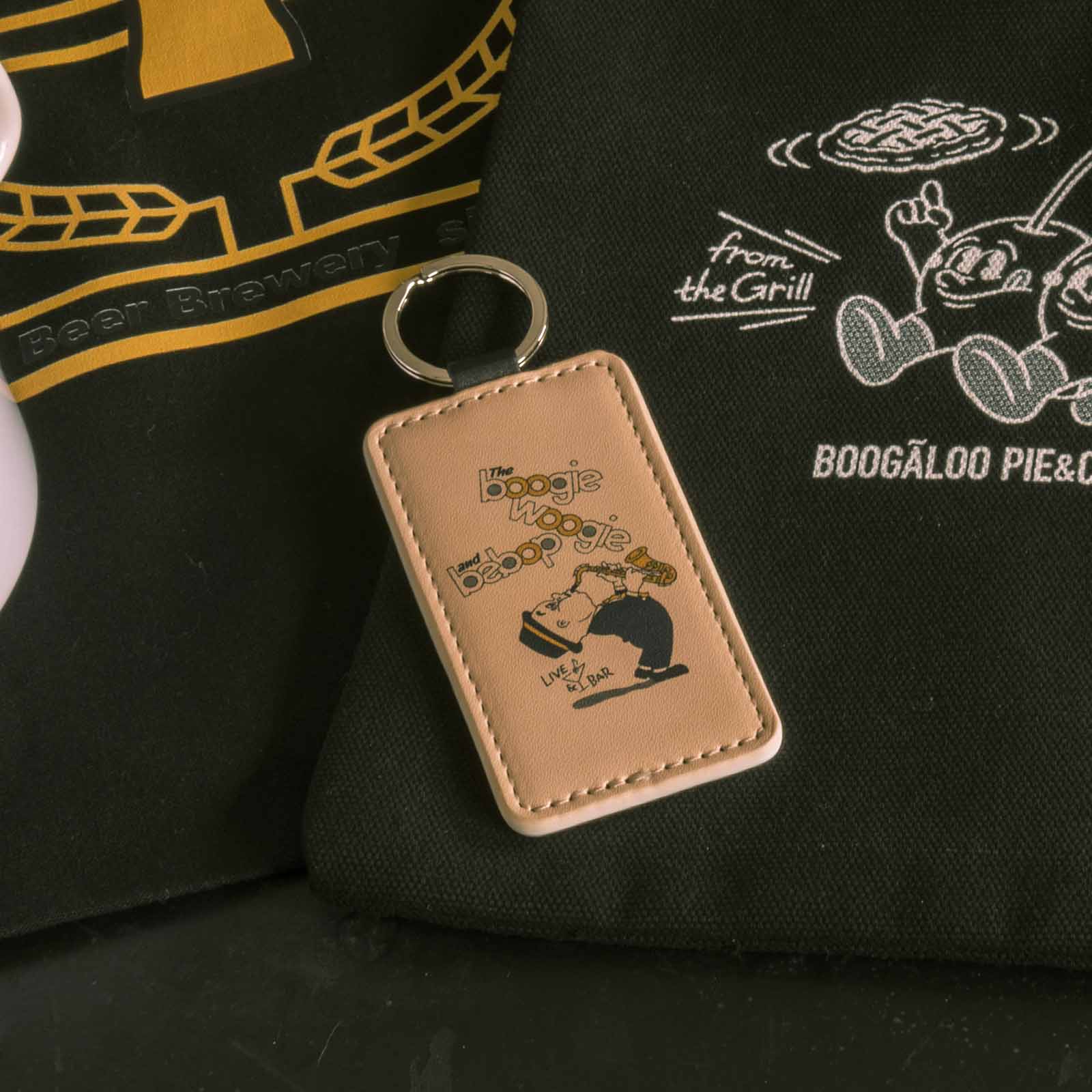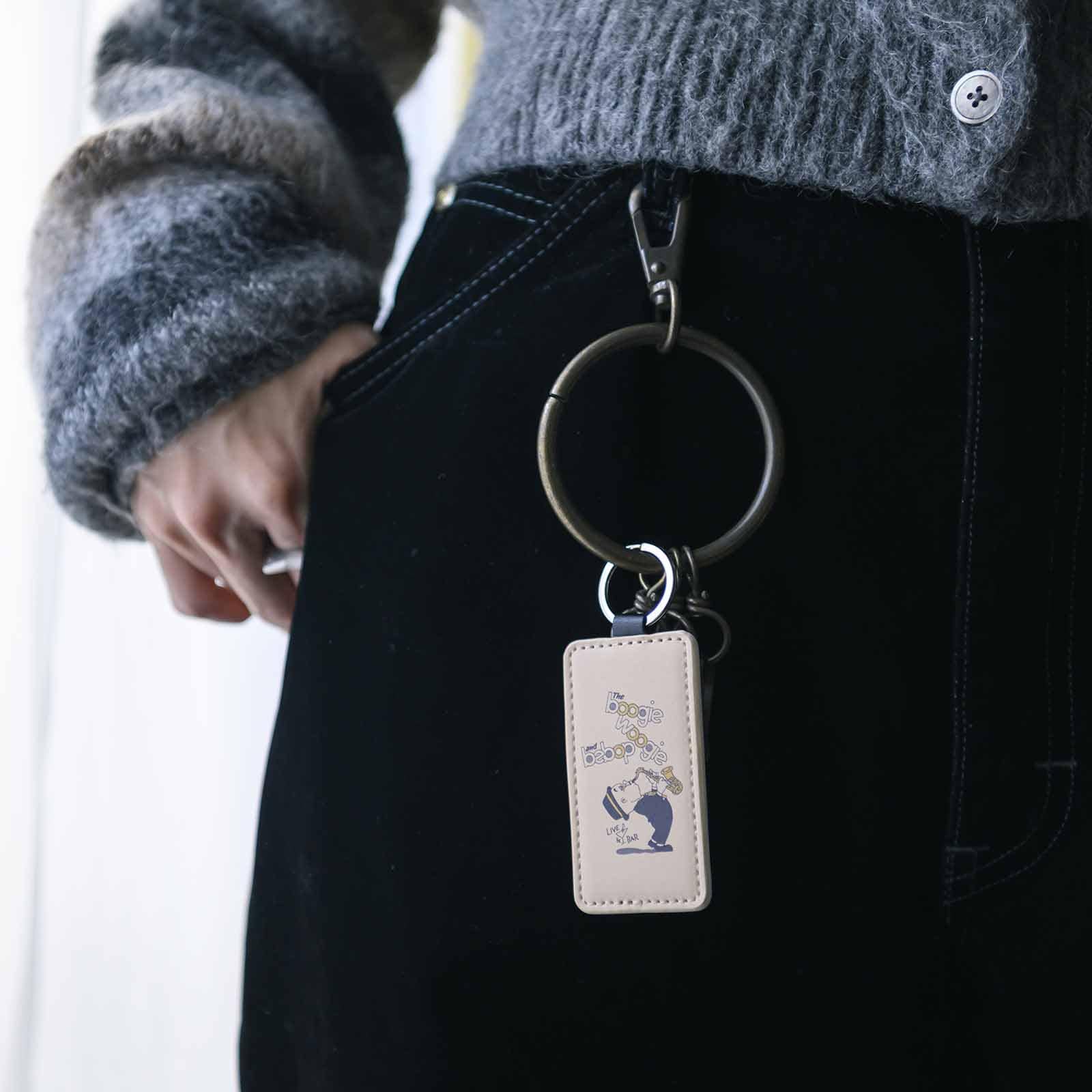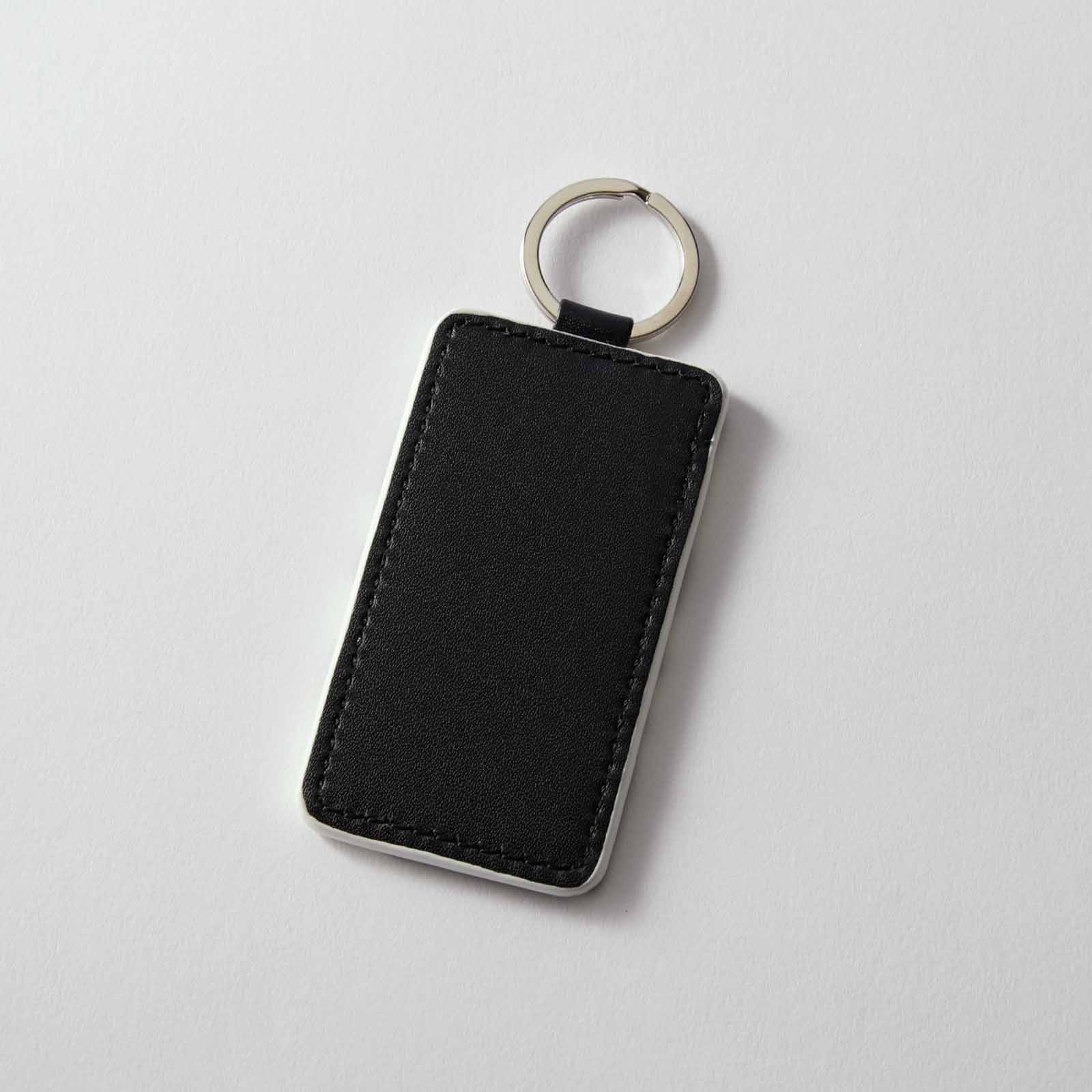 傷や汚れに強いレザー合皮を使用し、柔らかい触り心地が特徴の「長方形キーホルダー」。