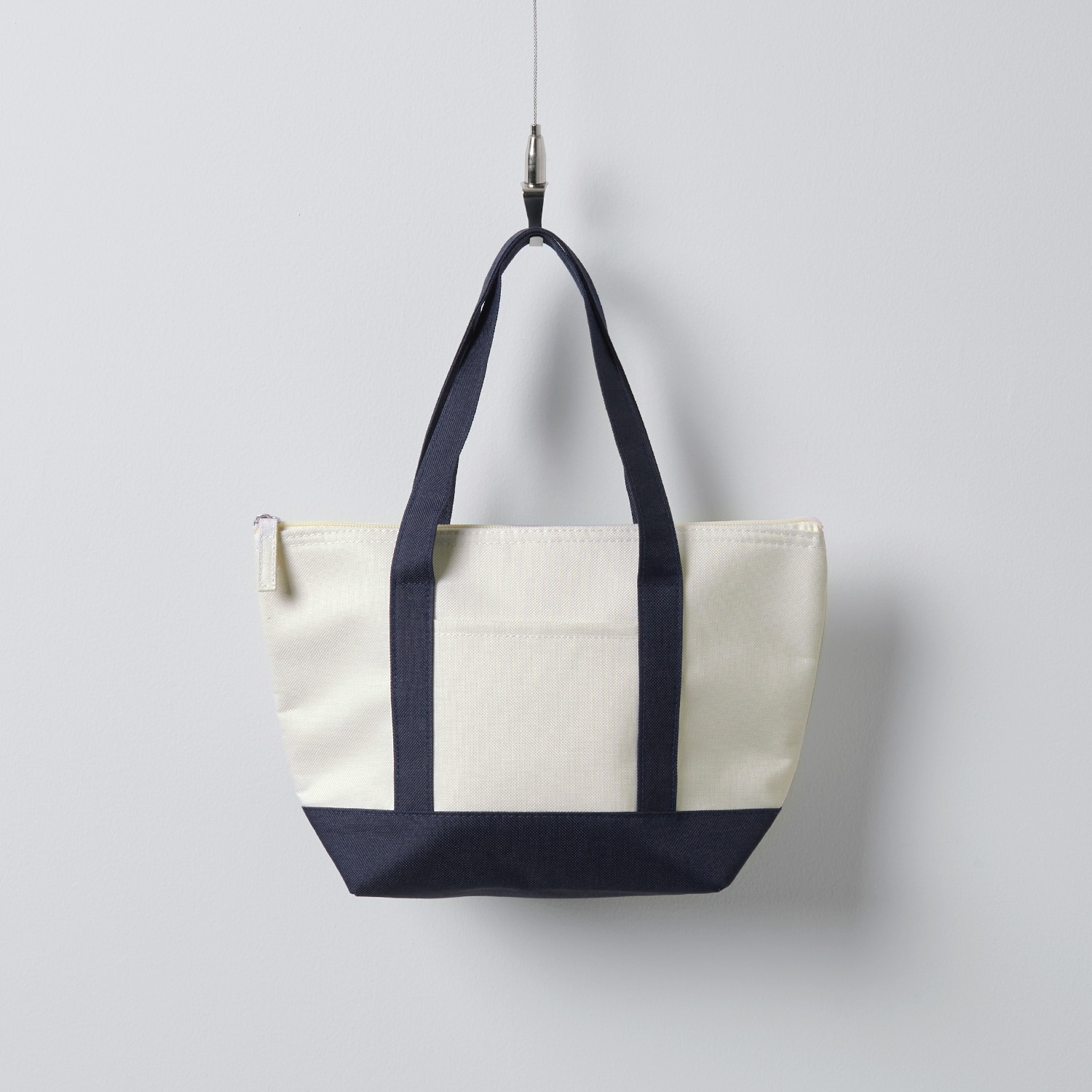 持ち手ベルトと底部分にアクセントカラーが入った保冷バッグ。