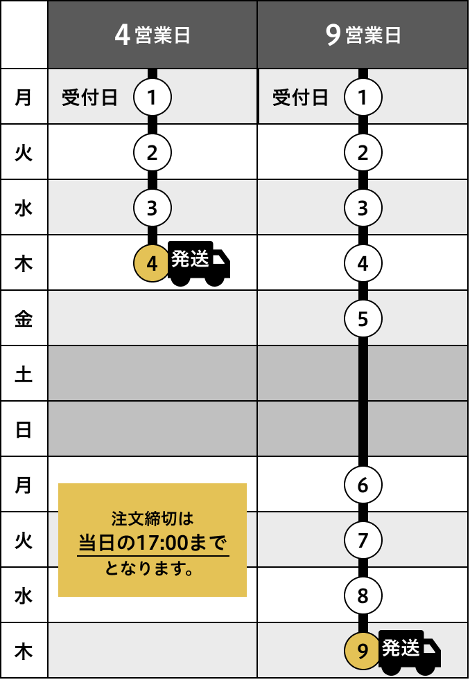 - ※納期を確約するものではありませんので、余裕を持ってご注文