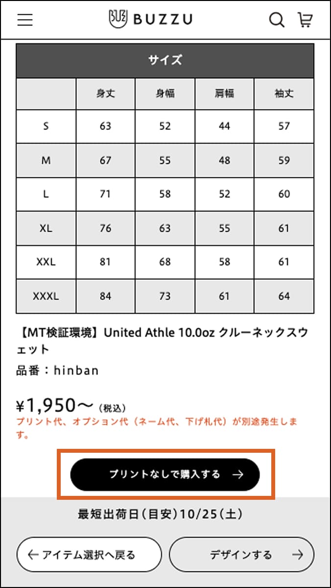 加工前の無地商品もご購入いただけます。商品を実際に手に取って、素材感・品質・サイズをお確かめください。