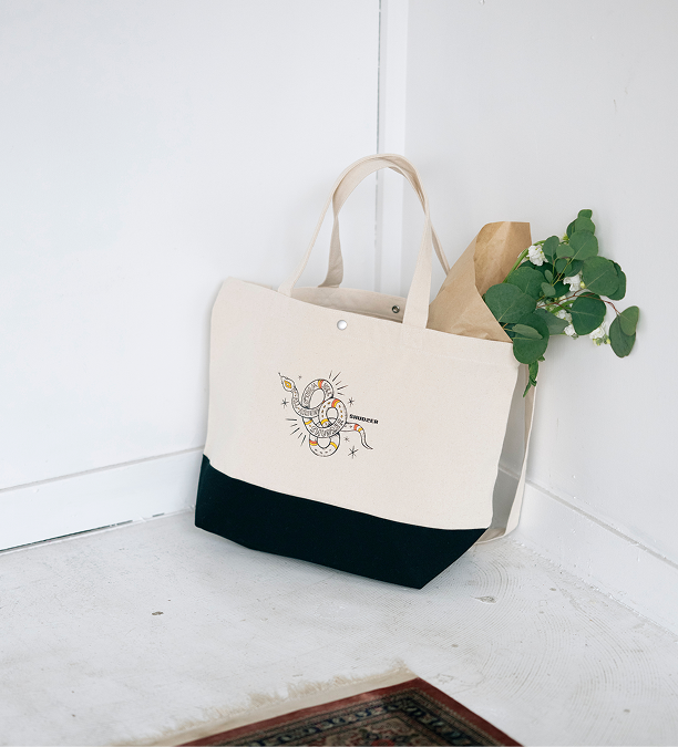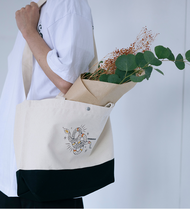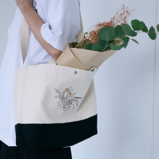 お店でトートバッグ等を販売して欲しいというお声も多く、またディスプレイとして吊り下げておいても可愛いと思い、バッグを選びました。